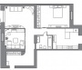 Стилістичне рішення В основі інтер’єру – мінімалізм та збереження простору. А тому чи не найважливішим завданням було правильне зонування. Інтер’єр не перевантажений зайвими деталями. Легкий акцент – геометричні форми на стінах та стелі у всіх кімнатах. Коридор виконано у пастельних тонах. Він плавно переходить у вітальню, яка збільшена завдяки її об’єднанню з лоджією. Саме там, де колись була лоджія, зараз – затишне місце для відпочинку із квітами та краєвидом із вікна. У спальні для зручності розмістились шафа-купе, туалетний столик та велике двоспальне ліжко. Також господарі зможуть тут подивитися і телевізор. Краплю пристрасті в інтер’єр саме цієї кімнати додає поєднання білого та червоного кольорів. Натомість жовтогарячі акценти (диван, штори, полички) у дитячій кімнаті наповнюють її сонцем, роблять теплішою та привітнішою.
