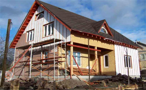 Технология каркасного строительства позволяет возвести дом в короткие сроки. Каркас выполнен из деревянных или легких стальных конструкций. Проемы в стенах обязательно заполняют теплоизоляционным материалом.