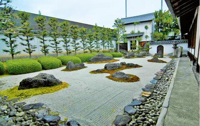 Ручьи и речки придают саду динамичность. Они максимально естественны, над их водной гладью часто возвышаются камни — своеобразные сады камней в воде. Эффект воды может быть создан в саду и без использования ее как таковой, то есть отобразить ее можно символически — при помощи песка, гальки, камня. Японский Сад камней размещают в отгороженной территории (в особом микромире) особым образом и согласно тщательно продуманной композиции, символизирующей Вселенную, песок, камни, морскую гальку, мхи. Искусство Сада камней возникло как стремление постичь идеи дзен-буддизма и достичь просветления через уединенное самопознание, созерцание, медитацию.