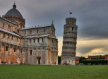 Всемирно известная падающая Пизанская башня расположена в городе Пизе и является колокольней собора.