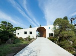 Арочный туннель сформирован между этими двумя зданиями, расположенными около японского сада чая около Токио.