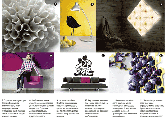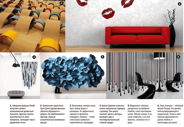 Дизайнерские эксперименты направлены на создание настоящих настенных арт-объектов, которые и преобразуют пространство (к примеру, визуально расширяя его), и функционально улучшают его, снабжая среди прочего теплоизоляцией. Но самое приятное в дизайнерских разработках то, что это только начало «большого пути»: открыв для себя еще одно, вертикальное, измерение, предметники обнаружили его большой потенциал — стен в квартирах и домах много, площадь у них большая, поэтому пространства хватит на всех.