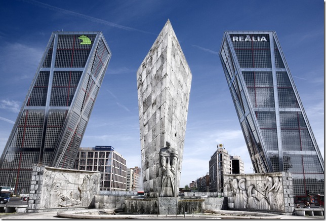 В 1996 году в Мадриде произошло действительно грандиозное событие – в центре города на площади Кастилья выросло две «Пизанские башни». Еще эти два здания-близнеца именуют «Воротами в Европу» из-за того, что они повернуты и наклонены друг к другу под углом 15 градусов, символизируя таким образом арку или ворота.