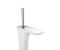 Монокомандный смеситель для раковины с автоматическим донным клапаном.